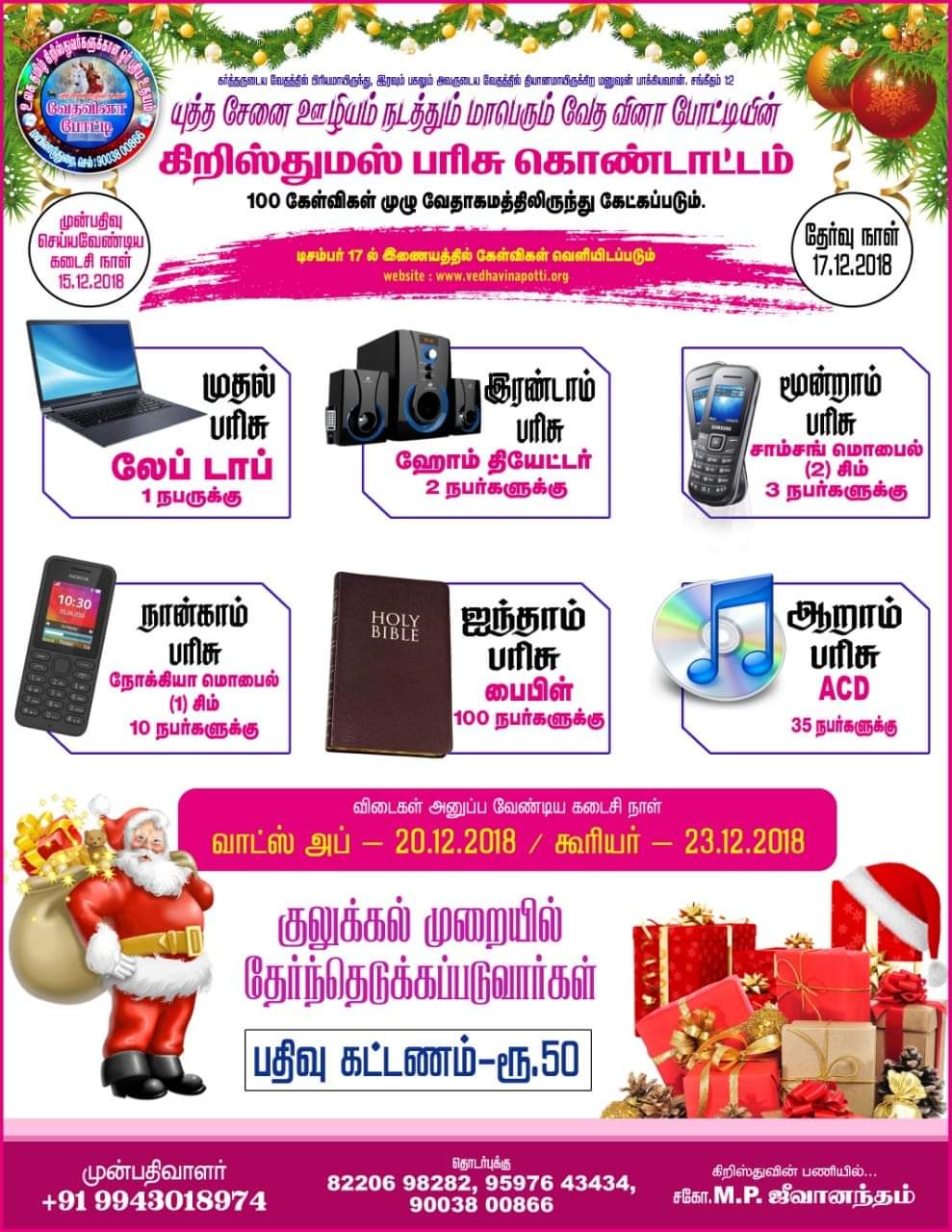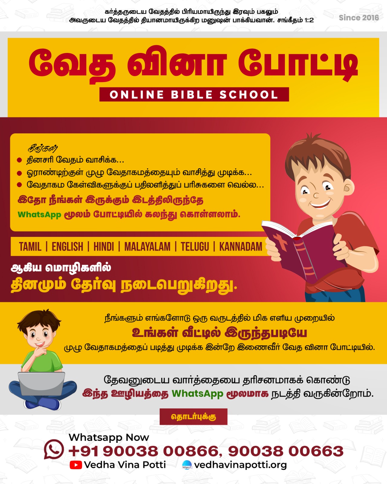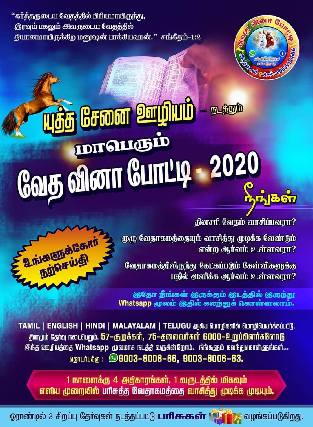 வேத வினா போட்டியில் இணைந்து எளிய முறையில் முழு வேதாகமத்தையும் ஓர் ஆண்டில் படித்து முடிக்க இன்றே இணைவீர்! தேவ ஆசீர்வாதத்தை பெற்றுக்கொள்வீர்!!